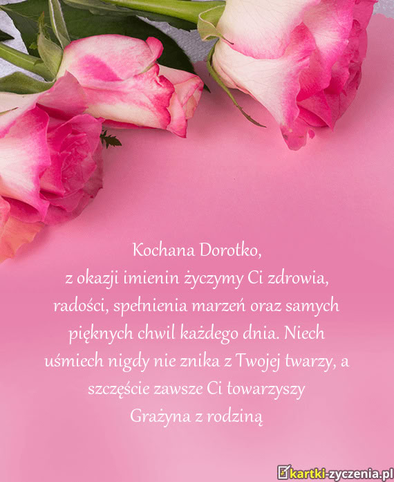 Z okazji imienin życzymy Ci zdrowia, radości, spełnienia marzeń oraz samych pięknych chwil każ