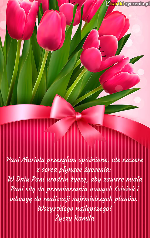 Pani Mariolu przesyłam spóźnione, ale szczere z serca płynące życzenia