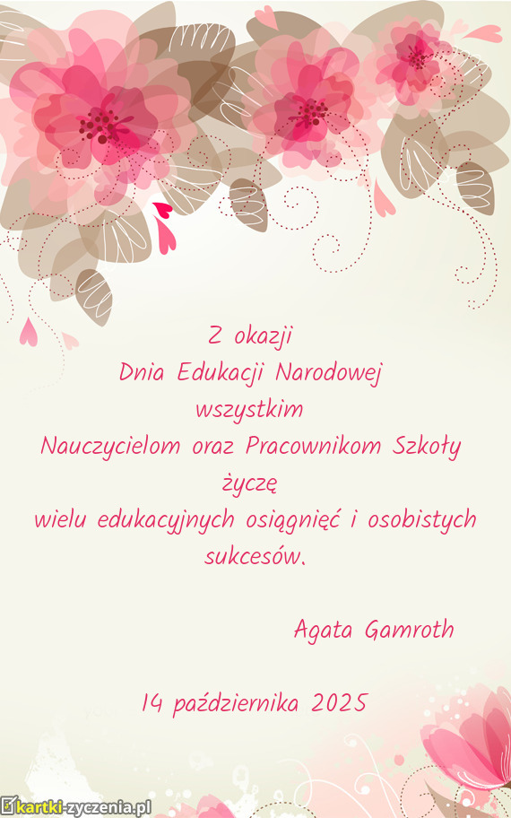 święta wszystkich, którzy maja odwagę, cierpliwość i poczucie humoru aby działać w szkolnym świecie - składamy życzenia: