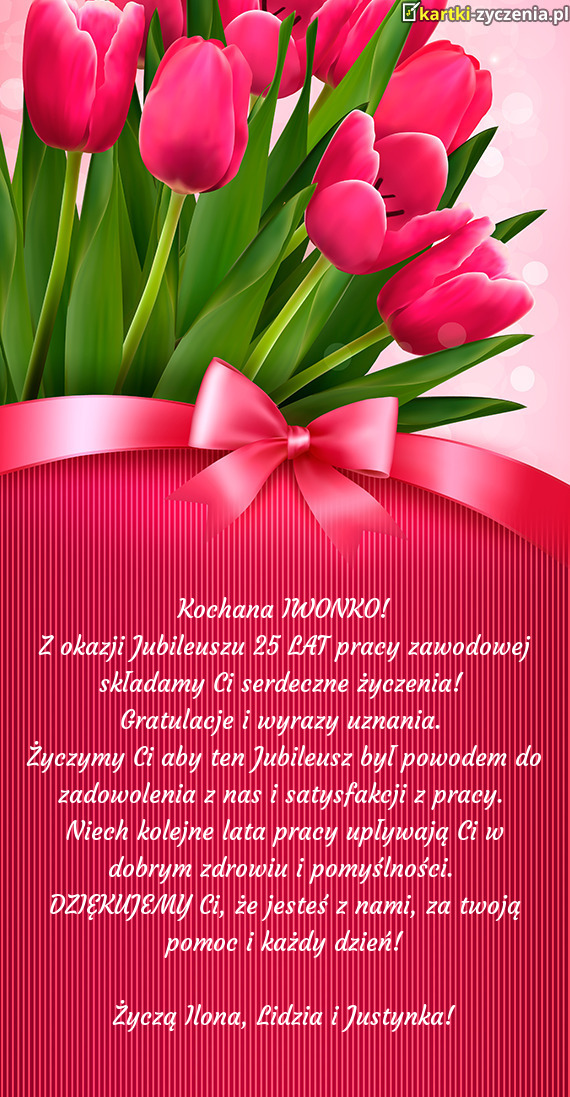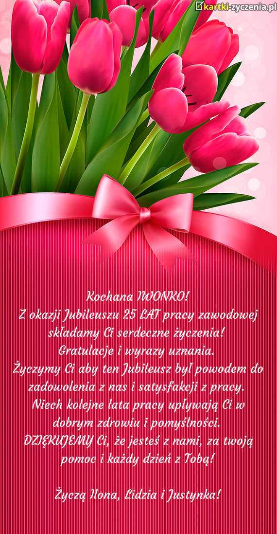 Z okazji Jubileuszu 25 LAT pracy zawodowej składamy Ci serdeczne życzenia