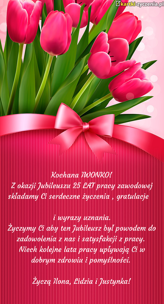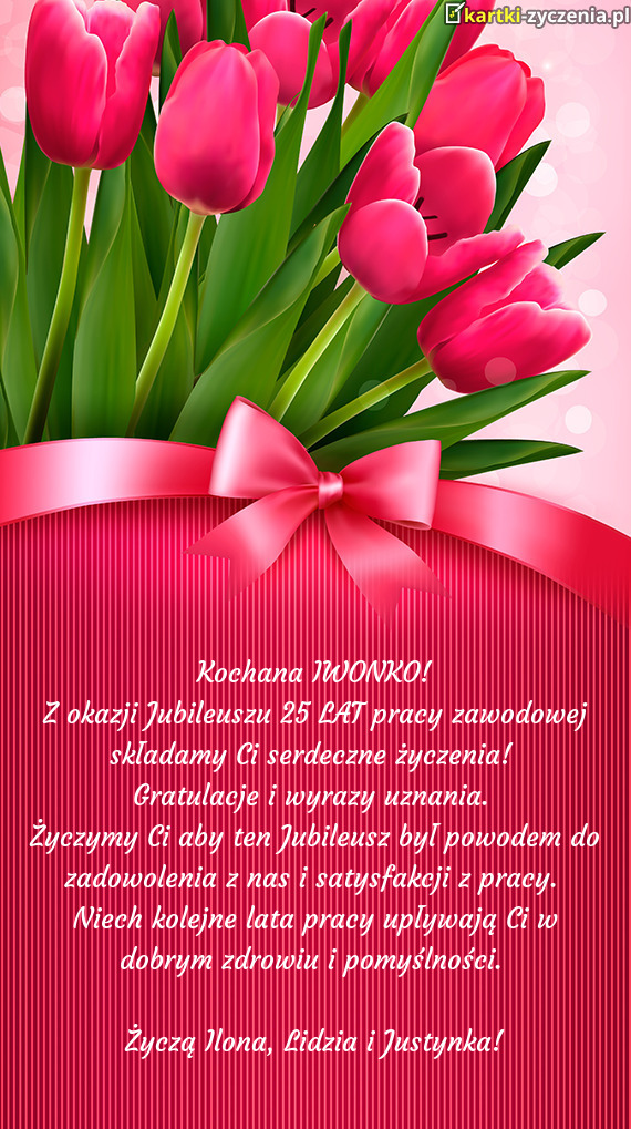 Z okazji Jubileuszu 25 LAT pracy zawodowej składamy Ci serdeczne życzenia , gratulacje i wyra