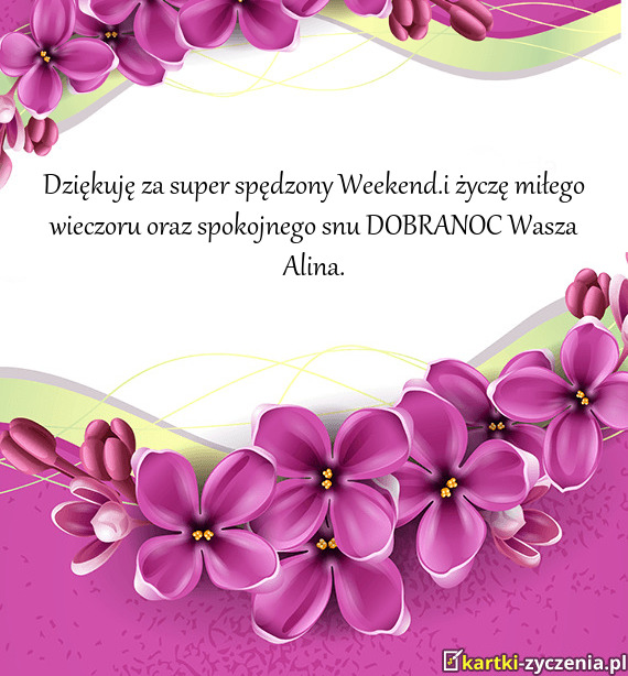 Dziękuję za super spędzony Weekend.i życzę miłego wieczoru oraz spokojnego snu DOBRANOC Wasza